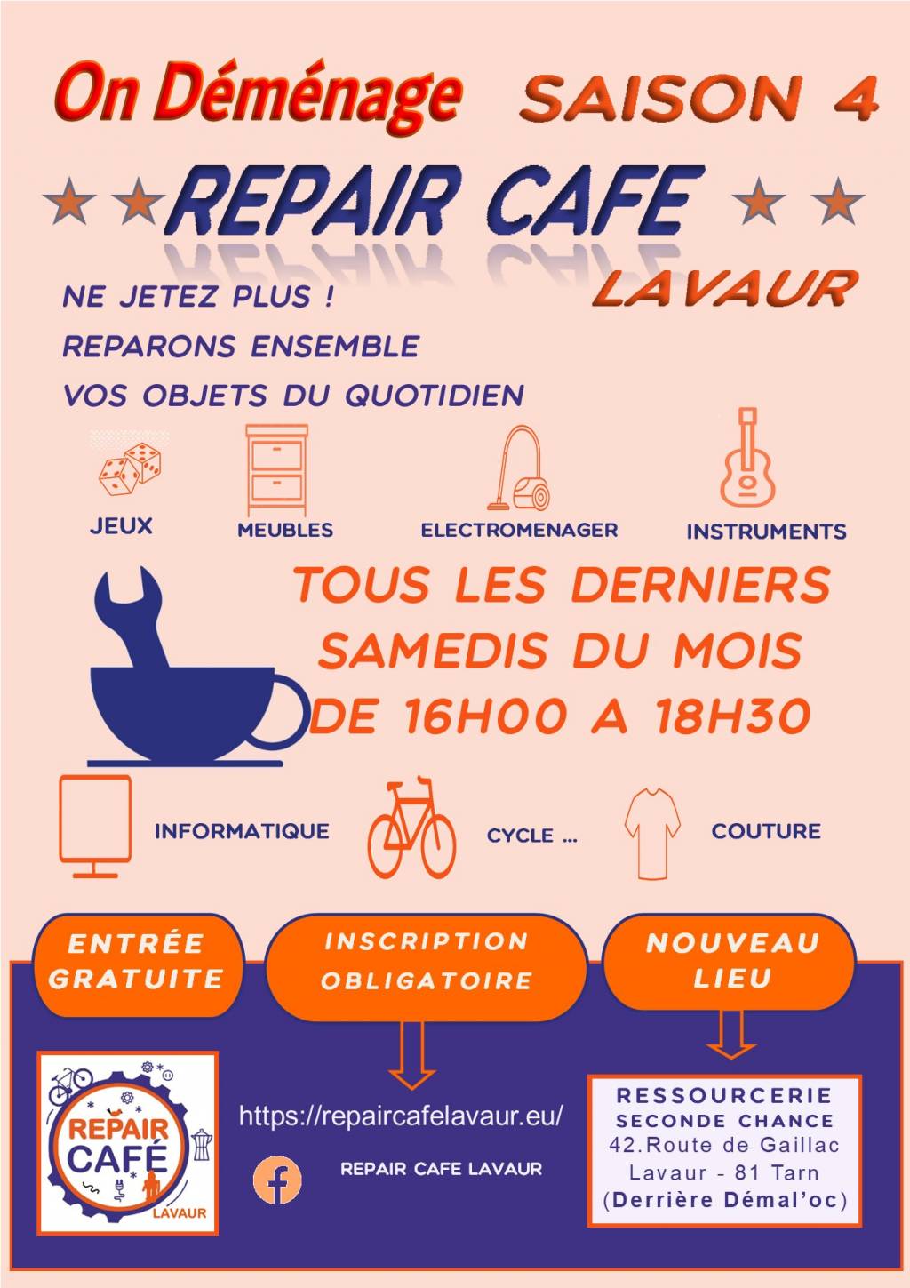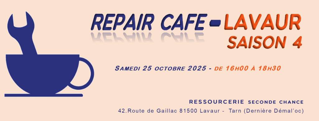 - Prochain Repair Café Lavaur - Samedi 25 Octobre 2025 - de 16h00 à 18h 30 - Ressourcerie seconde Chance