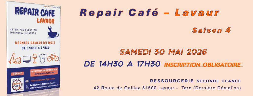 Repair Café Lavaur, association loi 1901 née en juin 2022 a pour objectif un lien social à travers d’ateliers de travaux de réparation de matériels usagés ou obsolètes pour éviter le gaspi et essayer de désengorger les déchèteries locales.